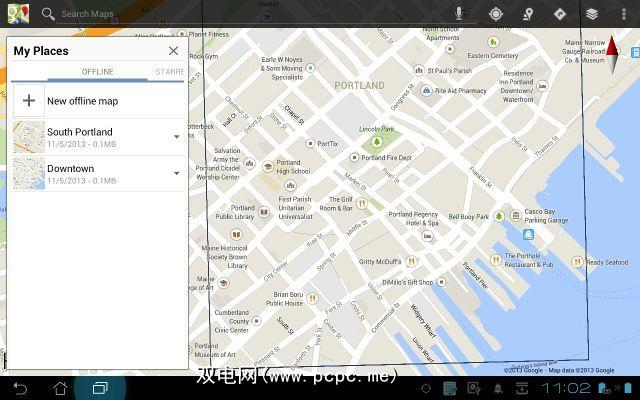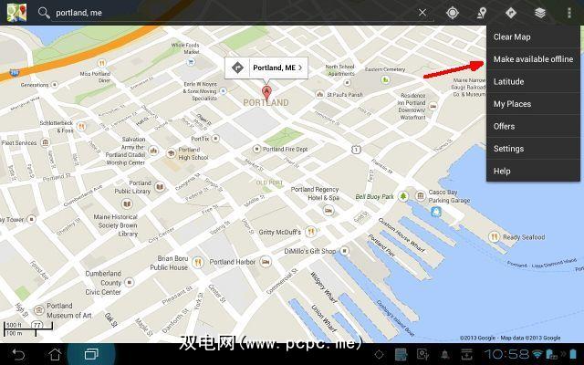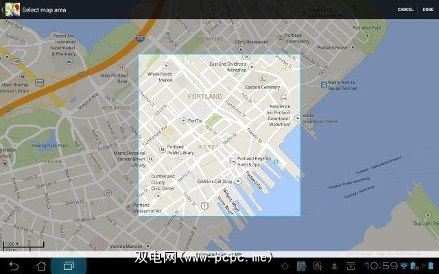 这可让您在要保存供离线使用的地图周围绘制一个框。在下面的示例中,我要保存一张缅因州波特兰市中心受欢迎的旅游购物区地图,称为“旧港口"。当您在该地区行走时,这里是一片令人迷惑的鹅卵石和铺成的街道,但与此同时,在购物仙境中寻找自己的出路也将是小菜一碟。