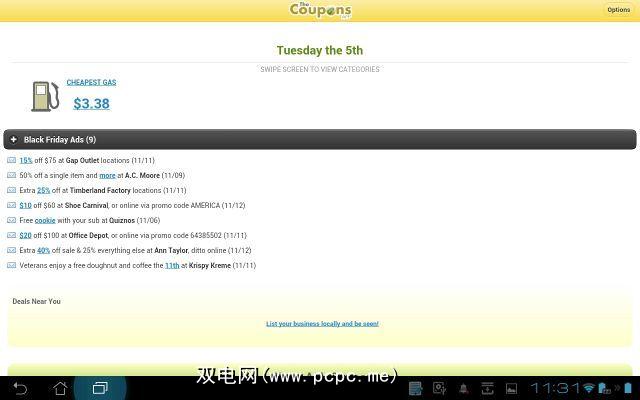 我要分享的最后一个交易搜索应用是Google Play上获得好评的The Coupons。像其他的交易查找器应用程序一样,The Coupons非常简单。基本上,它将列出今天最新交易广告的信息流(有点像RSS feed)。