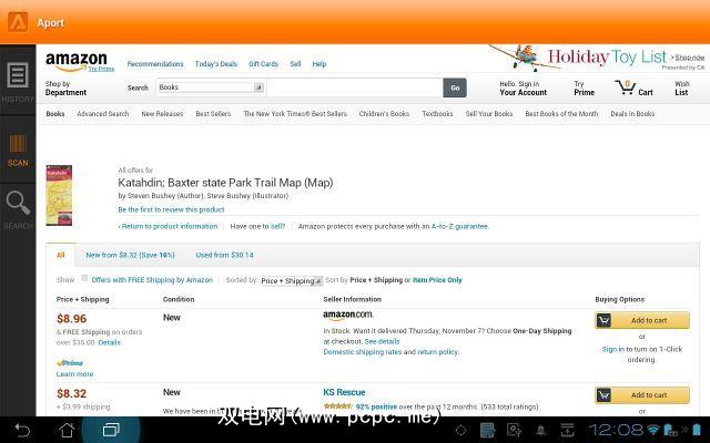 另一个价格检查应用程序更喜欢使用的是Aport应用程序,该应用程序使您可以使用平板电脑相机扫描产品。
