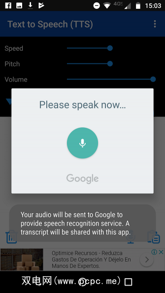 Android上另一个流行的文本到语音应用是TK解决方案的文本到语音。