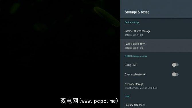 存储和重置菜单与您以前使用的菜单更相似。在设备存储下,您会看到Android TV设备上剩余的空间。如果单击设备的名称,则会看到详细的细分。