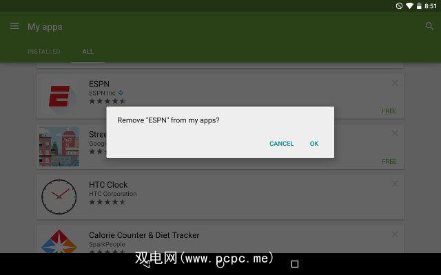 没有快速的方法来擦除您曾经购买的所有应用程序,但是您可以一次从中删除一项。 Play商店应用。从导航菜单中选择我的应用,切换到全部,然后在您已卸载的应用上点击X。