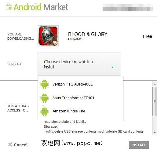 不需要任何特殊步骤。只需在您的设备上安装Android Market应用,然后使用您的Google帐户从任何一台计算机登录网络市场。根目录下的设备将作为选项显示在“ 发送到…"下拉列表中。选择它,然后单击安装,将更新推送到您的Android设备。