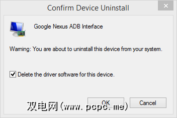 确保选中删除该设备的驱动程序软件的复选框 >。