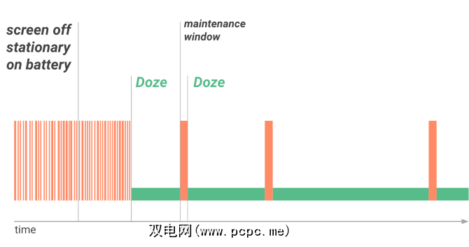 虽然唤醒锁很重要,但是开发人员可以滥用它们。这就是为什么Facebook和许多其他应用程序会在后台杀死您的Android电池的原因。 Doze通过提供有限的“维护窗口"来帮助解决此问题,该窗口允许应用程序偶尔而不是不断地签入。手机处于休眠状态的时间越长,在这些窗口之间经过的时间就越多。