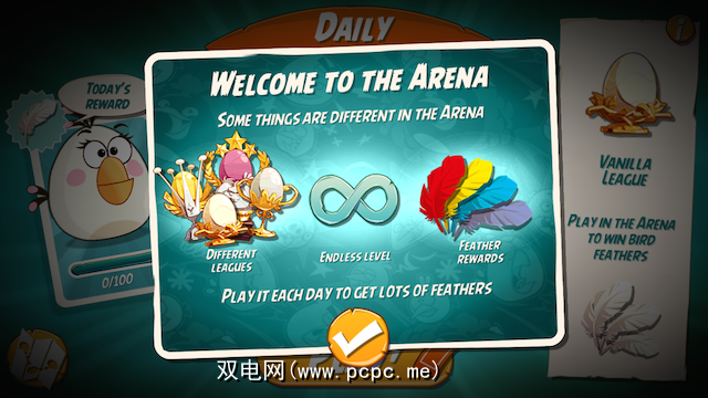 多人竞技场: Angry Birds 2可让您在竞技场,这是一个无休止的关卡,您会一直玩下去,直到牌用完。您可以根据自己的技能水平加入不同的联赛,并每天获得“羽毛"奖励。当您处于某个特定级别或参加一些比赛时,这是一种很好的玩游戏的方式。