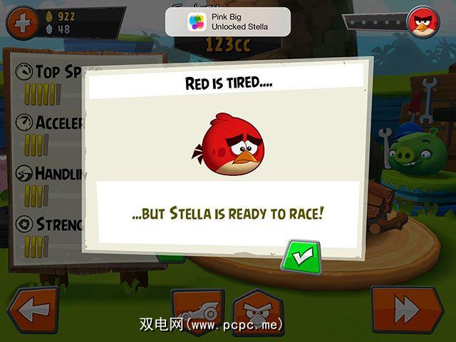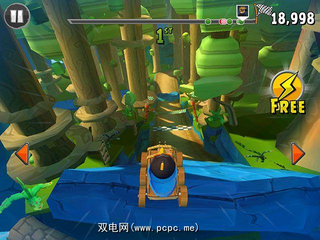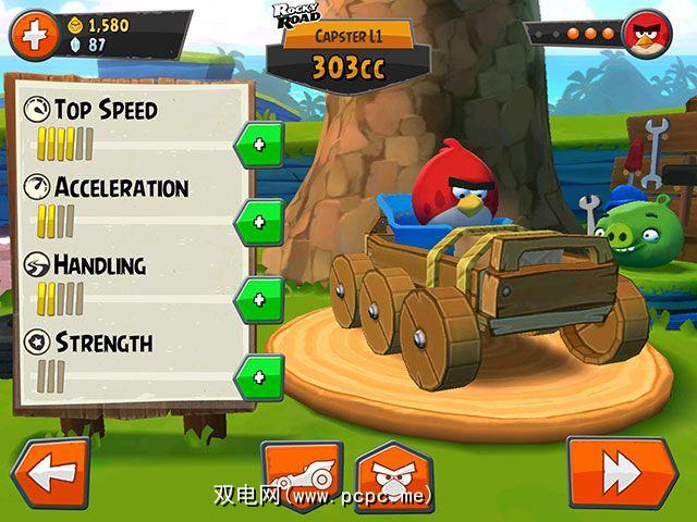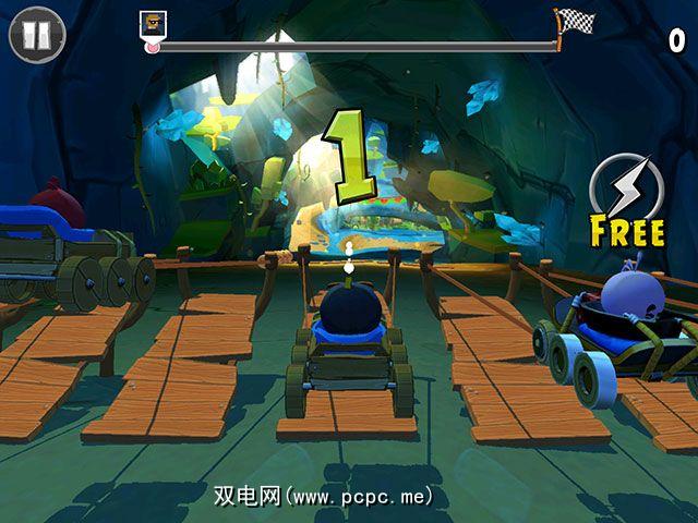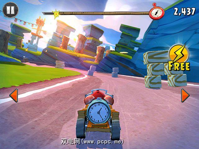 尽管如此作为一名赛车手,游戏仍然设法囊括了一些经典的《愤怒的小鸟》参考。例如,每次比赛都使用标志性的弹弓开始–要求您向后拉,等待计时器达到“ Go!",然后松开以开始比赛。从此开始,您所要做的就是将卡丁车转向赛道,避免障碍物和其他赛车手。您的卡丁车无法操纵其在空中的位置,因此大部分的难题都涉及采用熟练的方法来应对路上的颠簸。