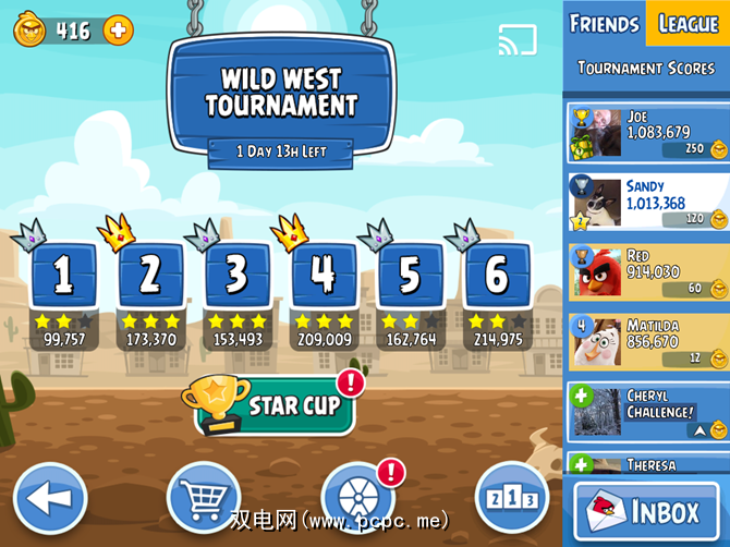 为获得相同的乐趣和游戏玩法,但又充满竞争,请玩“愤怒的小鸟朋友"。在常规比赛中,您与Facebook朋友对战,以查看谁可以得分最高。只要您在比赛结束时进入前三名,您就可以赢得硬币。然后,使用这些东西购买有用的道具。