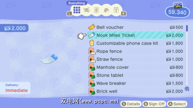 使用Nook站点,您可以以2000 Nook Miles的价格购买Nook Miles门票。这些将立即交付,并且有效期为一趟。前往机场,与奥维尔交谈,您可以使用票。