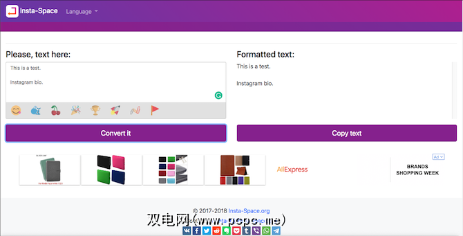 诀窍是采用用于编写盲文语言的不可见空白符号。像Insta-Space这样的应用程序可让您轻松地将其用于Instagram字幕。您只需要像通常使用换行符一样粘贴或键入标题,Insta-Space就会自动使用特殊符号设置其格式。将结果复制并粘贴到Instagram上,一切就绪。除移动应用程序外,Insta-Space还具有Web客户端。