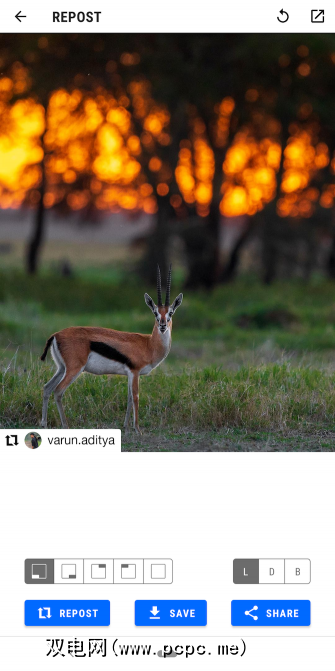 您需要做的就是通过点击链接旁边的三点菜单复制帖子链接并将其粘贴到第三方应用程序中。这些服务还具有转发字幕和视频的功能。默认情况下,它们会为原始海报添加水印,但您可以删除或重新放置水印。