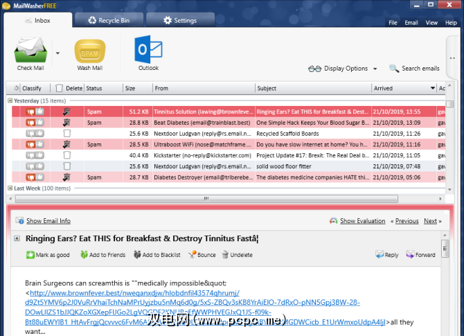 除这些限制外,MailWasher Free提供了许多与Premium版本相同的功能。