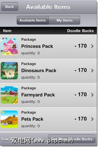 您还可以购买带有Doodle Bucks的Extras,然后快速下载。有些是“免费的",例如“色谱",而有些则可以吃掉安装随附的170个“涂鸦雄鹿"。我选择了“色谱",它可以让我在整个光谱上滑动手指来选择离散的颜色。