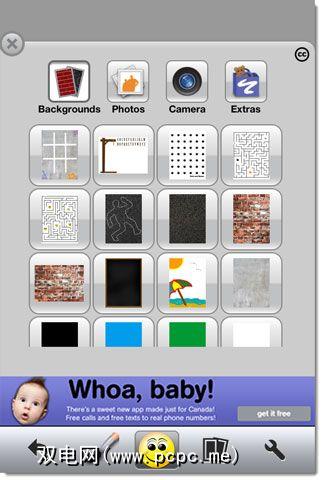 一打开它,就会出现一个空白的白色“画布"问候你这是默认背景,您可以通过单击左侧的第四个图标(看起来像两张照片)从中选择更多背景。例如,如果您在涂鸦,则可以选择类似于直纹纸的纸张。