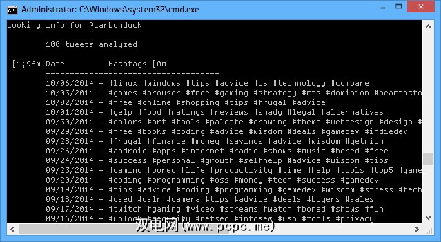 以下是我使用的所有主题标签的摘要,可以使用- h 参数。基于此,您可能会指责我使用散弹枪策略在每条推文中塞满太多标签,这是对的。你得到了我。