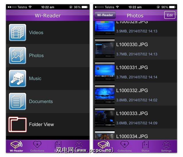 某些媒体(例如视频)可以通过Wi-Reader应用程序流式传输,而不会造成很多麻烦。对于照片,可以实时查看它们,将它们复制到应用程序内“收藏夹"文件夹中或直接导入到手机的“相机胶卷"中。