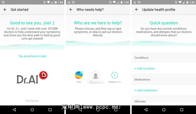 步骤1:健康个人资料。。要使用Dr. AI,您必须先创建一个免费的HealthTap帐户。创建完成后,启动移动应用程序并登录到您的帐户。您需要设置一个健康档案,其中包括年龄,性别,种族,体重,身高,状况,药物等详细信息。