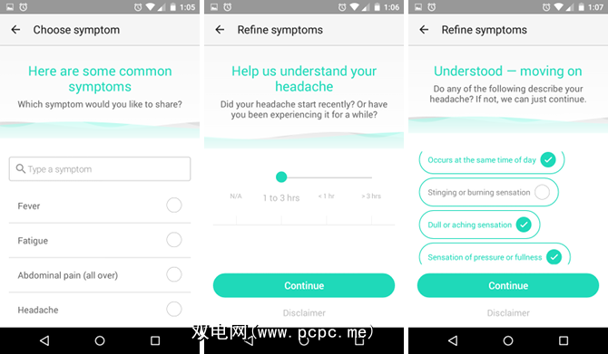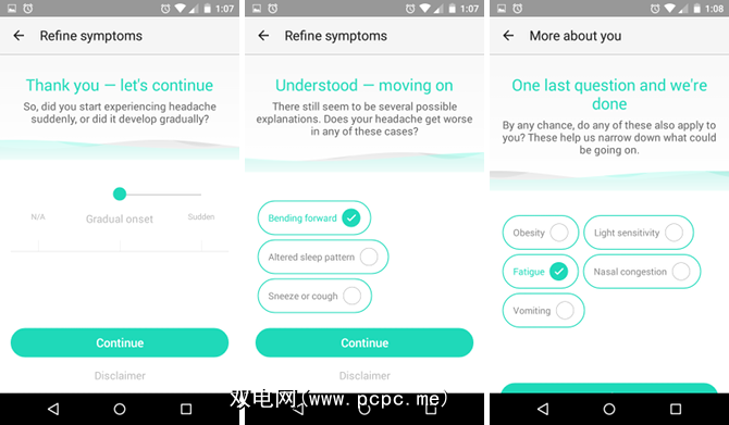 步骤3:细化症状。您输入的每种症状,AI博士将询问几个后续问题,以帮助您完善您的意思。例如,使您头昏眼花,失去平衡的头痛与使您对光敏感的重度头痛之间存在很大的差异。