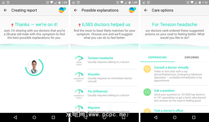 第4步:查看结果。完成后,A.I。博士需要几分钟来评估您的症状并找到可能的匹配项。就我而言,我很喜欢它告诉我“紧张性头痛"比“偏头痛"或“脑膜炎"更容易发生。您能想象如果被告知我可能患有脑膜炎会给我带来不必要的压力吗?不用了,谢谢。