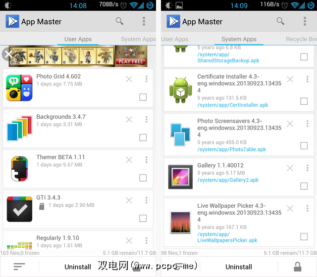 如果您熟悉卸载使用Titanium Backup的应用程序,您在首次启动App Master时会注意到许多关键差异:
