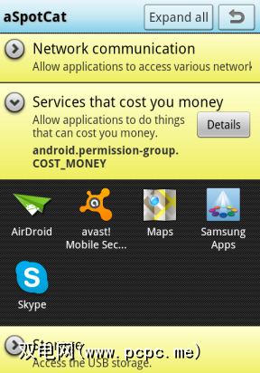 查看Android应用程序权限的内置方法有点慢如果您正在审查许多应用程序,那么这很繁琐。为了使其更快,请安装aSpotCat之类的应用程序。 aSpotCat会扫描已安装的应用程序,并按其所需的权限对它们进行分类。