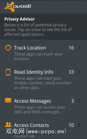 avast! Mobile Security还包括其自己的权限扫描程序,名为Privacy Advisor。