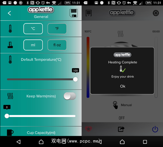 下一步,点击左侧的温度表以设置温度,然后让水壶烧开。当水壶处于预期温度时,您会收到通知,这非常适合您不在设备中时使用。