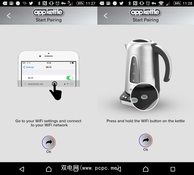 一旦安装,您可以通过确保两者均已安装将应用连接到水壶连接到您的家庭网络。连接水壶非常简单。将应用程序安装在支持Wi-Fi的手机上后,您需要按住AppKettle基座上的Wi-Fi按钮,直到检测到该应用程序为止。选择无线网络并输入密码后,水壶将通过家庭网络与您的手机配对。