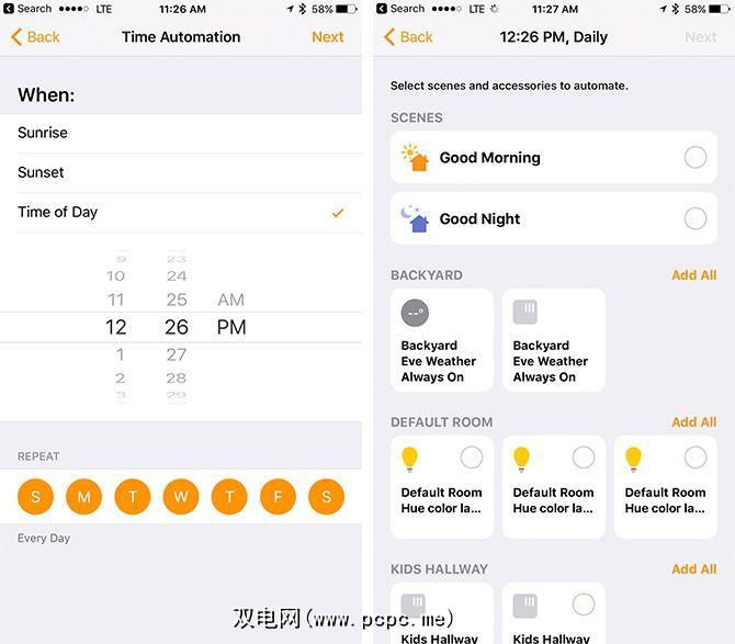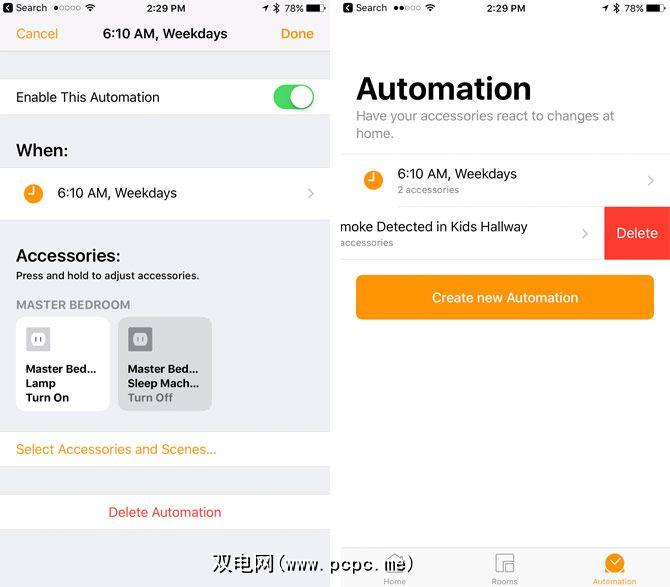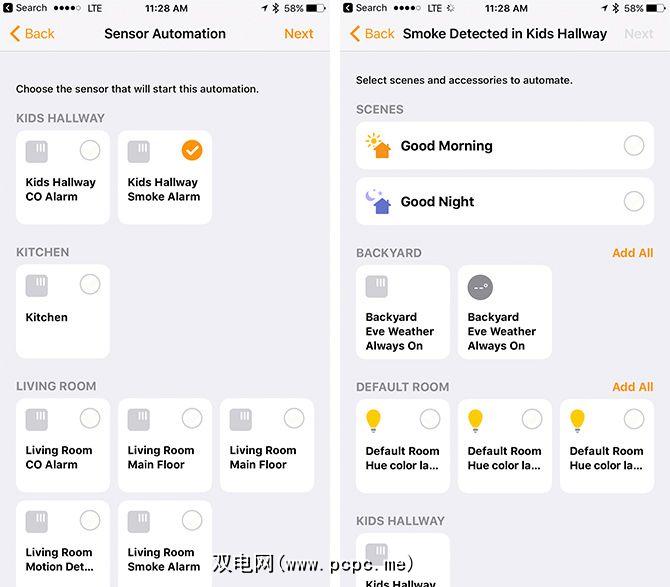 如果您只有一些配件(例如灯),则该自动化可能不适用。但是随着您继续向家庭中添加HomeKit设备,这种自动化充满了有趣的可能性。