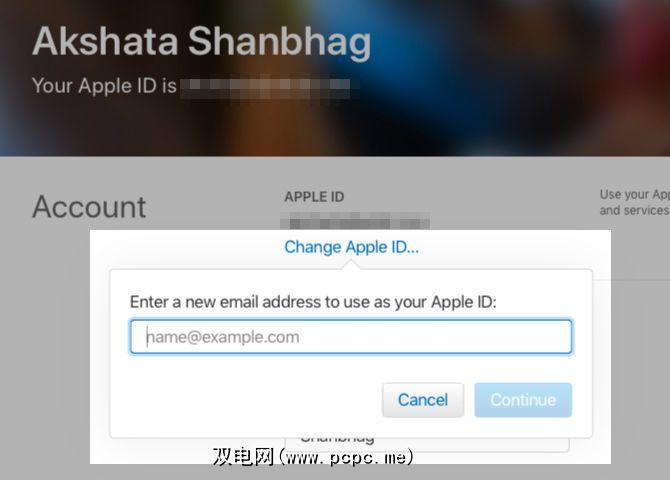 您可以从Apple帐户页面更改Apple ID。登录并单击“帐户"部分中的编辑按钮。然后,您会找到一个更改Apple ID 选项。使用此选项,您可以将与Apple ID关联的电子邮件地址更新为当前的电子邮件地址。