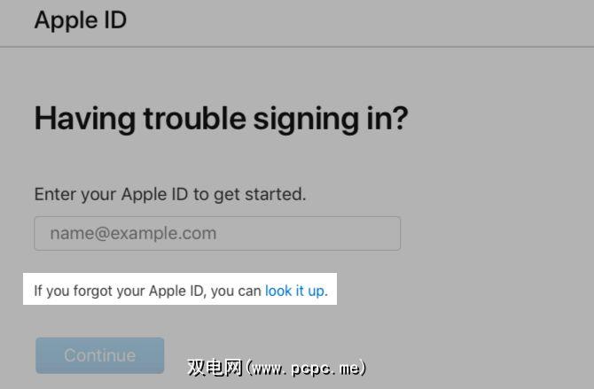要开始使用,请访问帐户页面并单击忘记Apple ID或密码在页面的底部。接下来,单击如果您忘记了Apple ID,则可以查找。