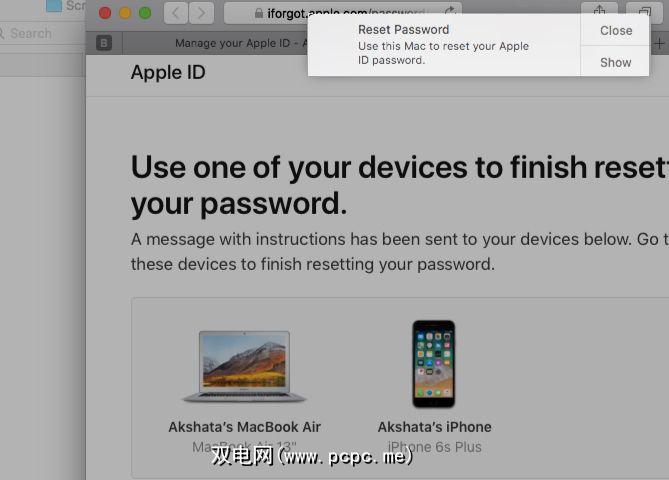 如果您想尝试其他方法,请点击无权访问您的任何设备链接。重置密码。