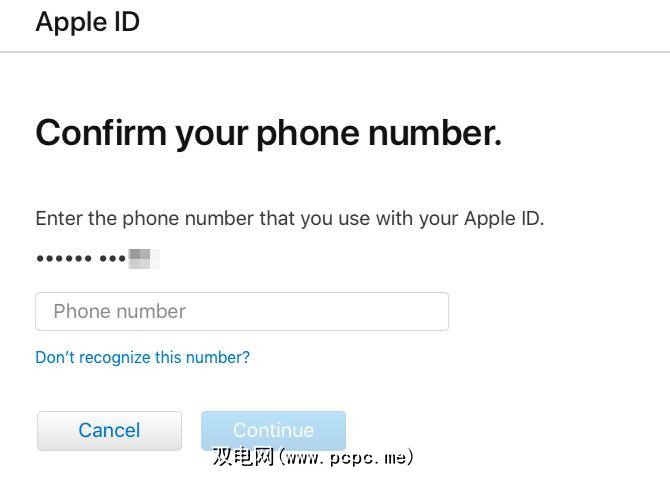 您可能必须输入与Apple ID关联的电话号码,以确认您的身份。
