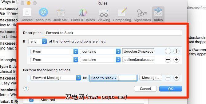 并非所有电子邮件都需要您立即关注。是的,即使在工作中。如果您的团队通过Slack之类的应用进行交流,则大多数时候您几乎可以忽略收件箱。为了确保超重要的电子邮件(如果有的话)不会逃避您的通知,请使用下一条规则将它们转发给Slack。