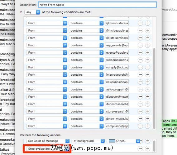 最后执行以下操作菜单,您可能已经注意到以下项目:停止评估规则。想知道它做什么?好的,它可以帮助Mail识别规则冲突时采取的正确措施。