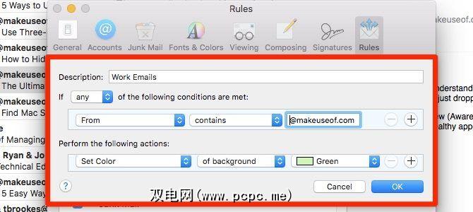 例如,当我在 [email protected] 上收到许多电子邮件时,这些电子邮件与我的工作有关总是来自 PCPC.me 。为了确定后者,我可以设置以下条件:来自包含 @ PCPC.me 。