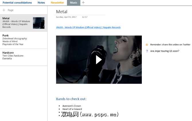 像Evernote中的堆栈一样,Notebook是高层组织类别。各节将每个笔记本中的内容分开,并且每个节也可以具有多个页面。各个部分可以组合成组,这是非常有用的组织功能。