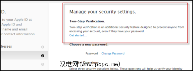 下一步,单击左侧的 Password&Security 标签。将提示您回答安全问题(希望您应该知道答案),这将使您进入主安全菜单。