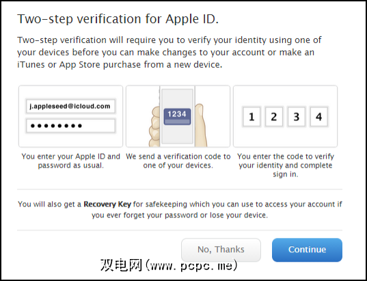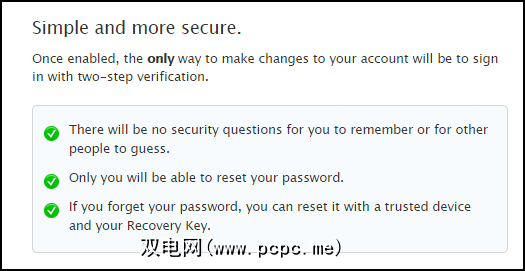 下一步,您会看到一个小方框,详细说明了启用两步操作的三个优点。阅读它,然后单击C ,不通过,不收$ 200。