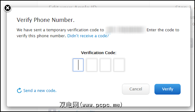 要进行设置,您需要智能手机。输入电话号码,包括正确的国家/地区代码。这很重要,因为您现在将从Apple获得带有四位数数字的SMS。