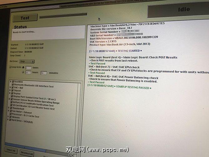 在单击测试之前,等待ASD初始化非常重要。第一次尝试EFI测试时,我单击按钮的时间过早,但按钮已挂起。还可以测试特定组件,跳过某些测试(如果它们导致Mac挂起,则可以使用),并通过循环该过程对系统进行压力测试。