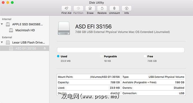 注意:可以将所有这些工具安装在单个分区上并直接运行它们,如果您只有一个小的USB驱动器用于EFI测试,这是完美的选择(如下图所示)。为此,请创建一个标准的macOS分区,然后像在上面的第四和第五步中一样“还原"映像。