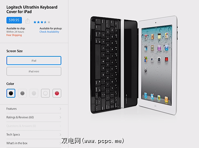 点击产品可显示详细的信息,包括价格,功能,评分和评论,问题和解答以及技术规格。但是,第三方产品均未包含指向其各自制造商网站的链接。在产品页面上向下滑动会显示菜单栏,用于在商店部分之间切换或返回首页。