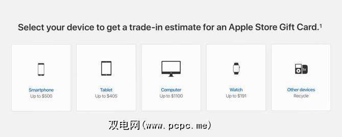 对于较旧的设备和iPod或Apple TV等物品,您将一无所获,但您可以将它们发送到Apple进行回收。
