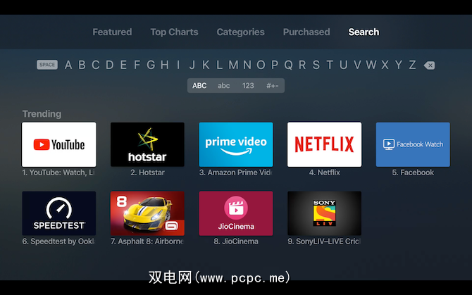 设置Apple TV(第4代或Apple TV 4K)后,转到主屏幕并找到 App Store 图标。单击它,使用触控板导航到顶部的搜索标签。