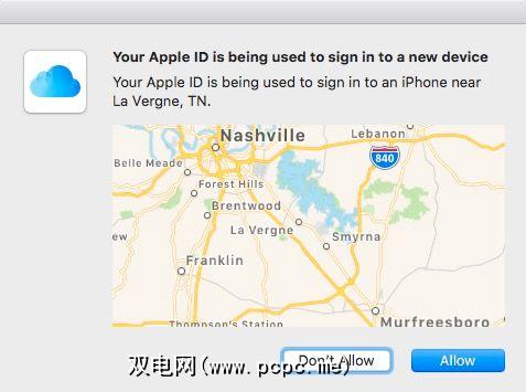 如果启用了该功能,则每当您使用Apple ID登录到新设备时,您都会信任该设备(s)将显示一条消息。这在Mac上显示如下: