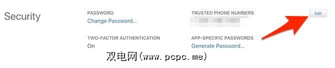 首先登录Apple ID网站(您必须先进行验证),然后单击安全性部分右上角的编辑按钮。