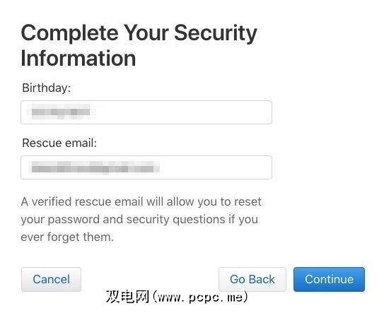 确认您的生日并提供急救电子邮件。如果您忘记了Apple ID密码和安全性问题,则有必要这样做。点击继续以完成操作。