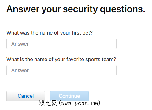 在这一点上,记住安全问题的答案至关重要。如果您忘记了答案,则可能需要通过Apple恢复帐户。