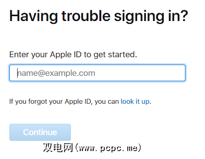 在Apple ID登录屏幕上,单击页面底部的忘记Apple ID或密码。输入您的Apple ID(如果您不记得它,可以在此处查找)并选择继续。